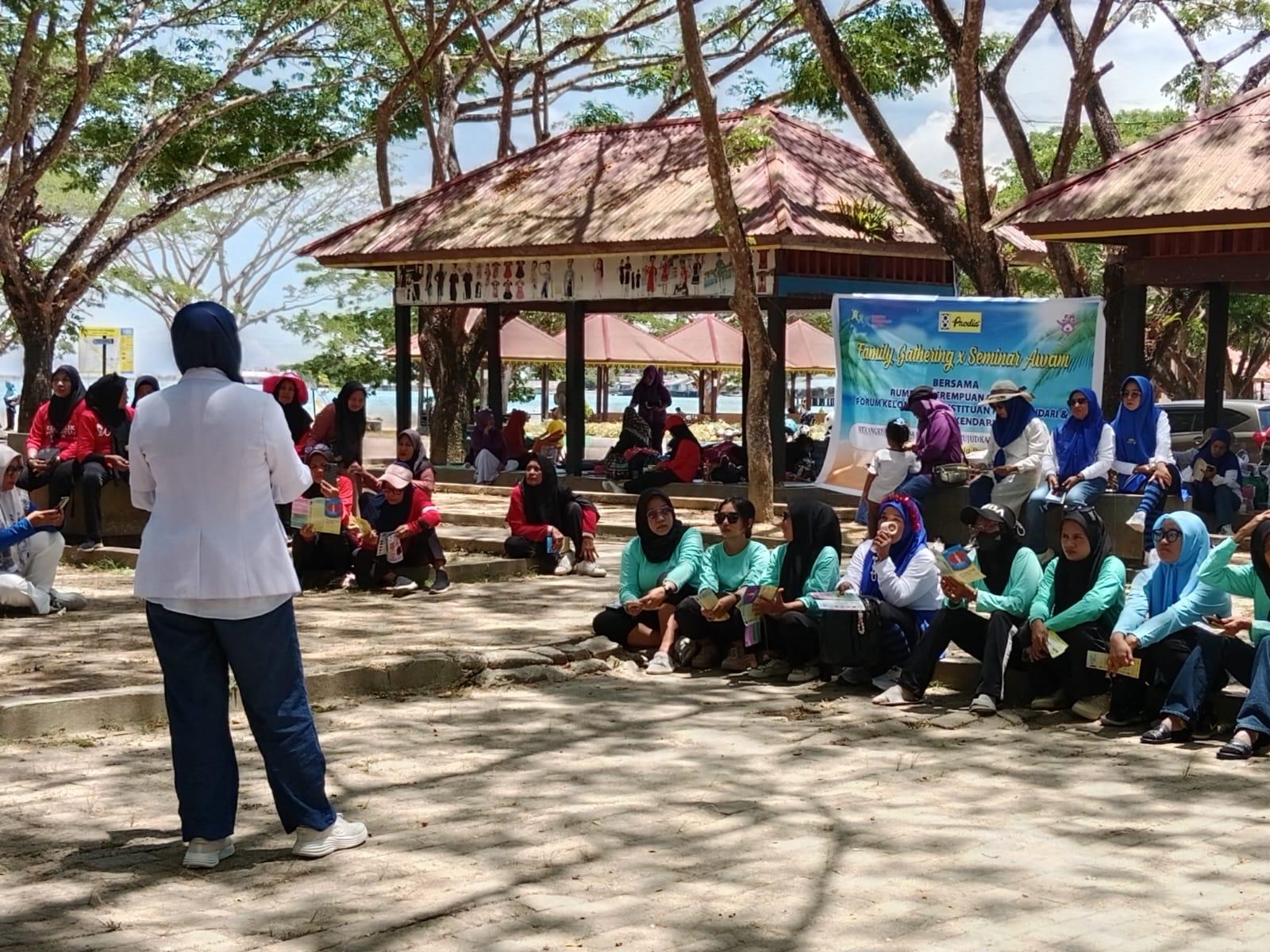 Pada tahun ini, tepatnya tanggal 26 Oktober 2025, Forum Kelompok Konstituen melaksanakan kegiatan Family Gathering yang diikuti oleh para pengurus kelompok konstituen dari 15 kelurahan. Kegiatan ini mengusung tema “Family Gathering dan Seminar Awan.” Tema tersebut lahir dari kolaborasi antara Rumpun Perempuan Sultra dan Prodia, yang melibatkan seluruh wilayah dampingan untuk menumbuhkan kesadaran akan pentingnya menjaga kesehatan. Kolaborasi ini diawali dengan kegiatan sosialisasi Prodia di Kelurahan Anawai dan Kelurahan Mataiwoi. Berdasarkan kegiatan tersebut, Forum Kelompok Konstituen kemudian menginisiasi sosialisasi kesehatan bertajuk “Jaga Ginjal di Usia Produktif” yang disampaikan oleh dr. Ayu Dyas P. Dalam pemaparannya, dr. Ayu menjelaskan pentingnya mengenal organ tubuh, khususnya ginjal — mulai dari fungsi, alasan pentingnya menjaga kesehatan ginjal, hingga dampak yang ditimbulkan bila ginjal tidak berfungsi dengan baik.